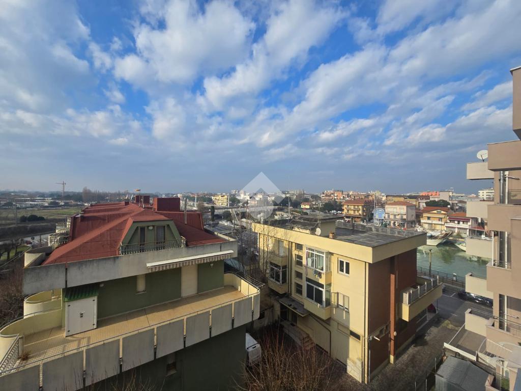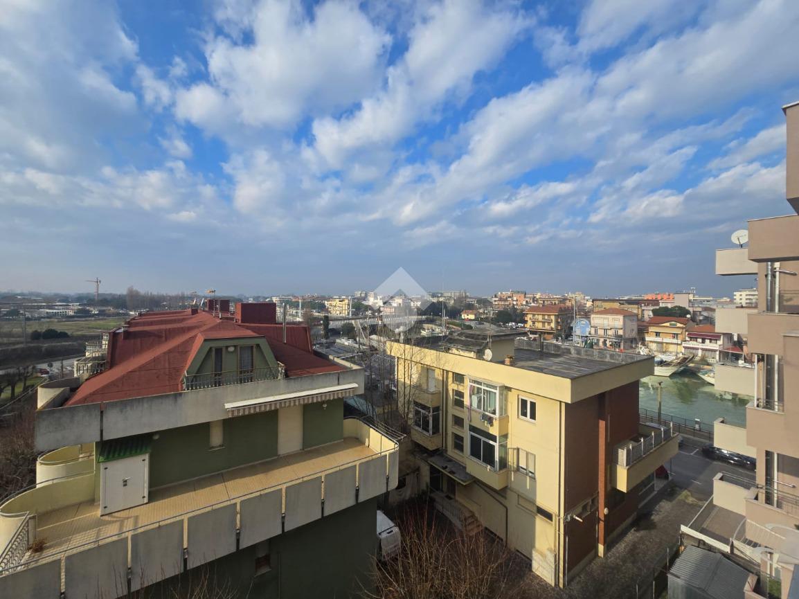 Direttamente sul Porto Canale, con una bella vista panoramica, bilocale luminoso al piano alto, servito da ascensore. Soggiorno con balcone, cucinotto separato, disimpegno zona notte, camera matrimoniale e bagno. Cantina. possibilità d' acquisto garage in palazzina adiacente.